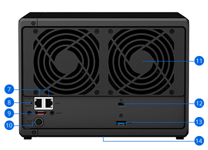 • “兼容的硬盤類型”表示硬盤經過測試,與 Synology 產品兼容。此術語不表示每個硬盤插槽的最大連接速度。