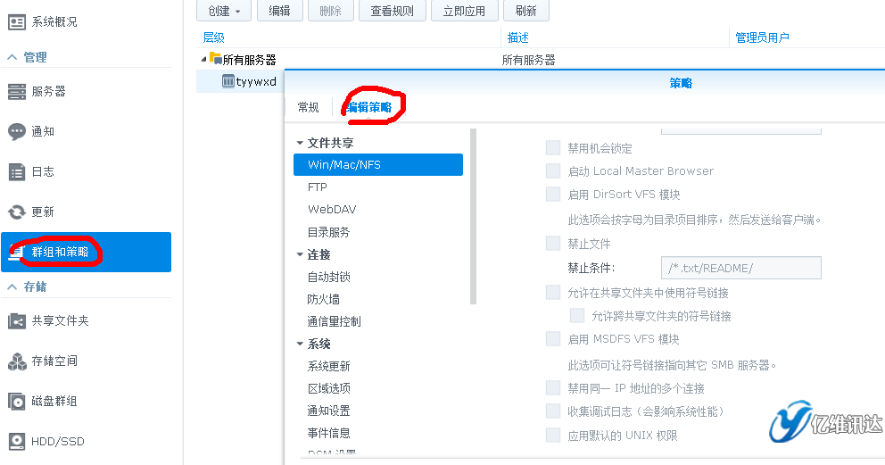 為了簡化管理并對所有的 Synology NAS 服務器應用統一的設置,您可將托管服務器組織進服務器組,并將策略應用到每臺服務器或服務器組。